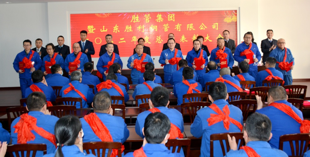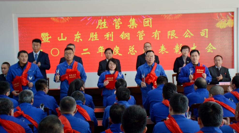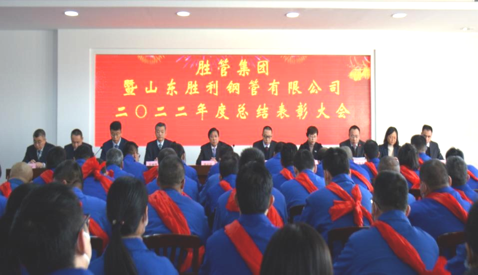 ?? 2023年1月7日上午,胜管集团暨山东胜利钢管有限公司2022年度总结表彰大会在集团四楼会议室隆重召开。胜管集团经理层、山东胜利钢管有限公司中层以上管理人员、员工代表及受表彰人员参加了本次会议。