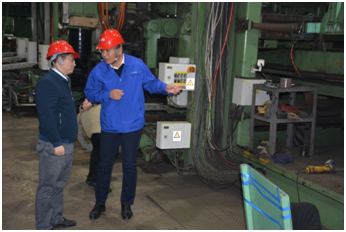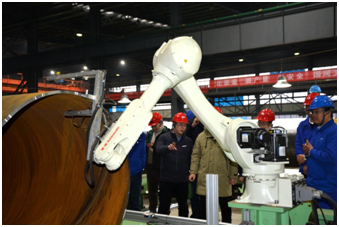 ?近期,山东胜利承接了河南省天然气洛阳伊川——郑州薛店项目(一期)管线钢管生产任务,值此钢管生产全面展开之际,2023年2月9日,河南省天然气管网公司企业管理中心副总经理上官景浩等一行9人到山东胜利考察调研。公司总经理赵增强、副总经理张圣光、于国光、李国松、安全总监石晨镭及相关业务部门负责人与客人进行了深入诚挚的座谈。赵总首先代表公司热烈欢迎河南省天然气管网公司领导到山东胜利考察调研,并向河南客人介绍了我公司50年的发展历程、公司现状、生产设备、人员情况、公司参与国内外重大管线工程生产保供业绩以及未来发展规划等情况,希望河南省天然气管网公司各位领导通过本次实地考察,进一步了解山东胜利的经营宗旨、销售理念、生产保供能力及发展前景,希望双方通过洛阳伊川——郑州薛店项目(一期)管线生产合作,在省域、城市天然气管网建设领域进行更加深入广泛的合作,助力河南省天然气管网发展建设。河南省天然气管网公司企业管理中心副总经理上官景浩对我公司50年奋斗取得的优良业绩表示赞赏,感谢公司的热情接待,他代表河南天然气管网公司对山东胜利2022年中标生产国家管网工程项目表示祝贺,同时也介绍了河南天然气管网公司的相关情况,对洛阳伊川——郑州薛店项目(一期)管线钢管生产合作及双方今后的进一步合作充满信心和期待,欢迎山东胜利积极广泛地参与河南省天然气管网建设,预祝洛阳伊川——郑州薛店项目(一期)管线钢管生产顺利成功。随后,赵总等公司领导陪同客人参观了公司展厅、实验室、三分厂、预精焊分厂、防腐保温分厂1#线。预精焊分厂机组集中控制系统、成品自动测量检验机器人等性能先进的生产检验设备给客人留下了深刻印象。