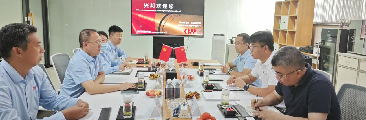 ?? 2024年9月3日,山东胜利公司总经理赵增强带队走访了河北唐山兴邦管道工程设备有限公司,受到了唐山兴邦公司董事长邱华伟、常务副总经理邱秀娟等领导的热情接待。
