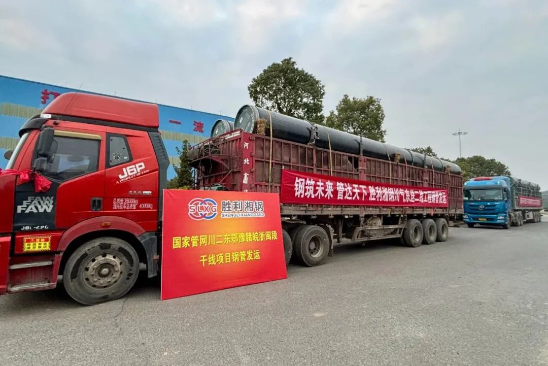 ?2024年12月21日、27日,由山东胜利和湖南胜利湘钢钢管承制的国家管网川气东送二线天然气管道工程项目首批埋弧焊接钢管和直缝埋弧焊接钢管相继从生产厂顺利装车发运。