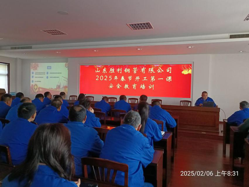 ?为确保春节节后安全复工复产、顺利开机生产,2025年2月6日,上班第一天,山东胜利组织了2025年“开工第一课”专题安全教育培训,总经理张圣光进行了授课,公司所有管理人员、技术人员、财务人员参加了面授,各生产岗位人员以收看现场直播的方式参加培训,淄博市高新区工信商务局安监办工作人员进行了全程监督。