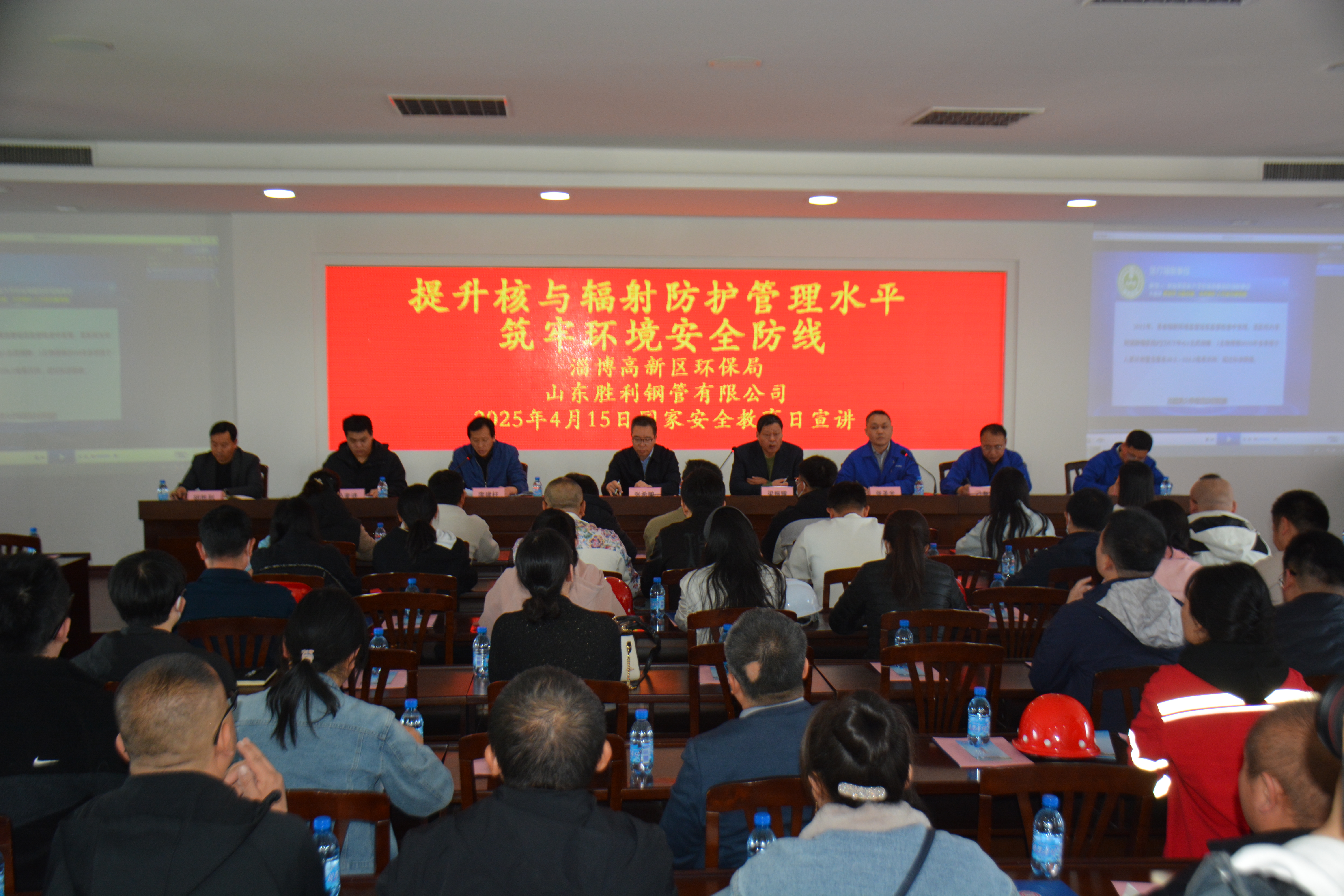 ??2025年4月15日,在第十个全民国家安全教育日之际,由山东胜利钢管有限公司承办的淄博高新区环保局"提升核与辐射防护管理水平、筑牢环境安全防线"主题宣传活动获得圆满成功。淄博市环保局领导、高新区环保局领导及高新区67家核技术利用企业代表共80余人参加了本次主题宣传活动。