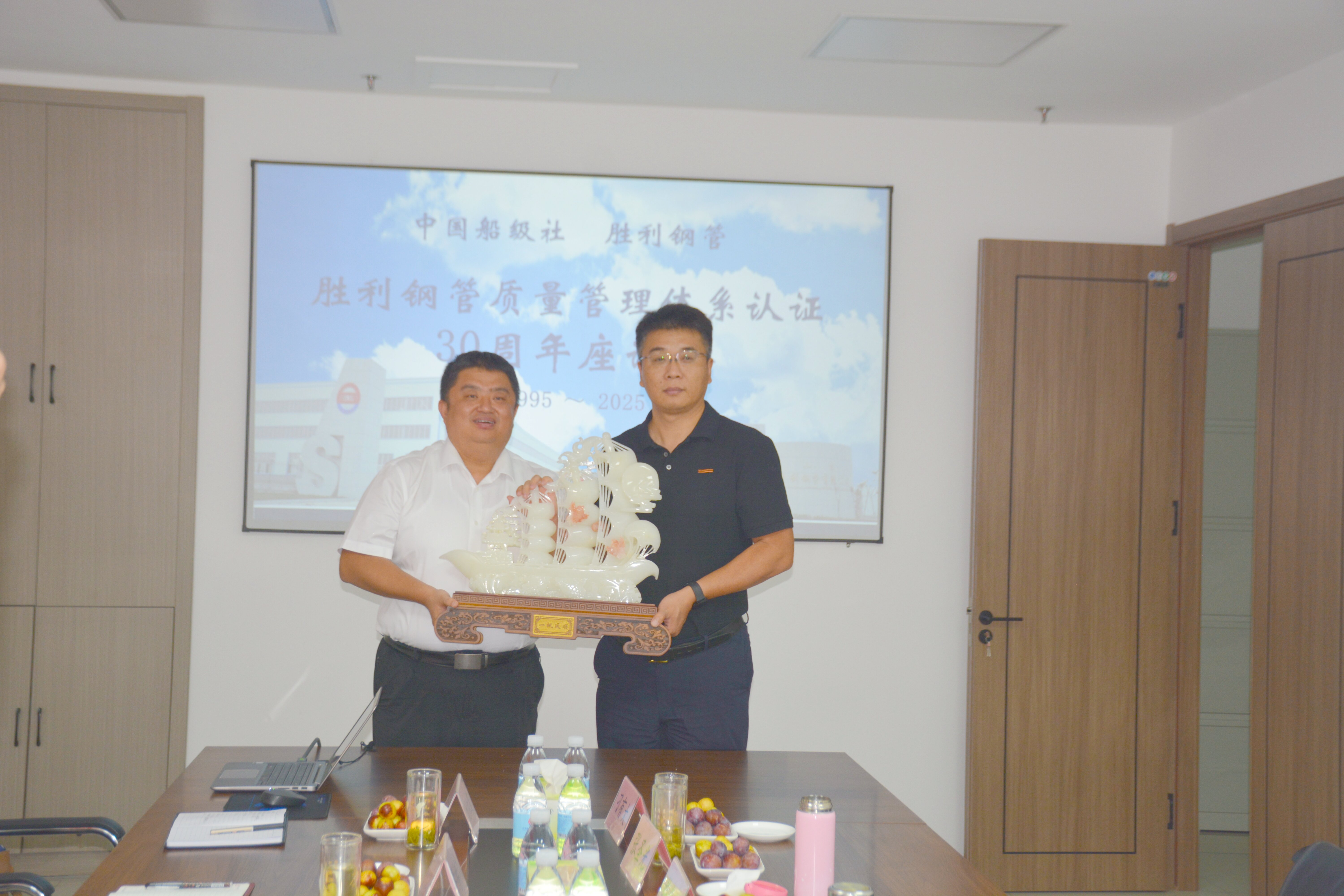 ? 2025 年 8 月 31 日,山东胜利钢管有限公司(以下简称“山东胜利钢管”)与中国船级社质量认证有限公司(以下简称 “中国船级社”)质量管理体系认证合作 30 周年座谈会,在胜管集团会议室隆重举行。本次座谈会以 “质为本 责为魂 效为翼,三十年认证赋能企业长青” 为核心主题, 共忆合作历程,共话未来发展。