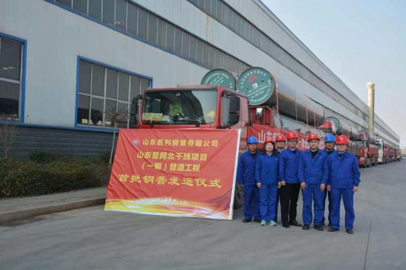2026 年 3 月 16 日,山东胜利钢管山东管网北干线项目(一期)首批双面埋弧螺旋焊接钢管发运仪式圆满举行。公司质量副总、销售公司及物流中心相关负责人共同出席仪式,见证这批关键能源物资踏上奔赴国家重点工程建设一线的征程。首批发运的钢管将通过公路运输快速抵达项目施工现场,为管道主体工程开工建设提供及时保障。